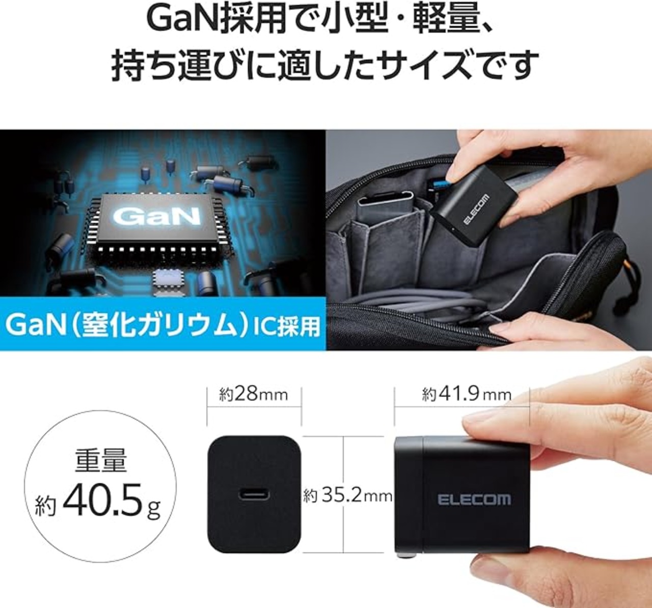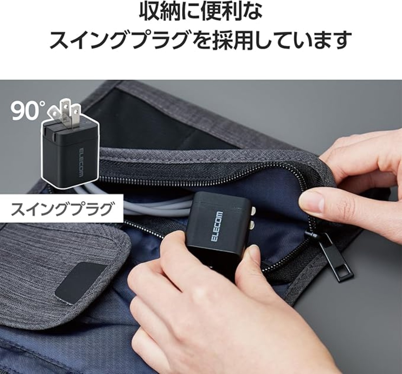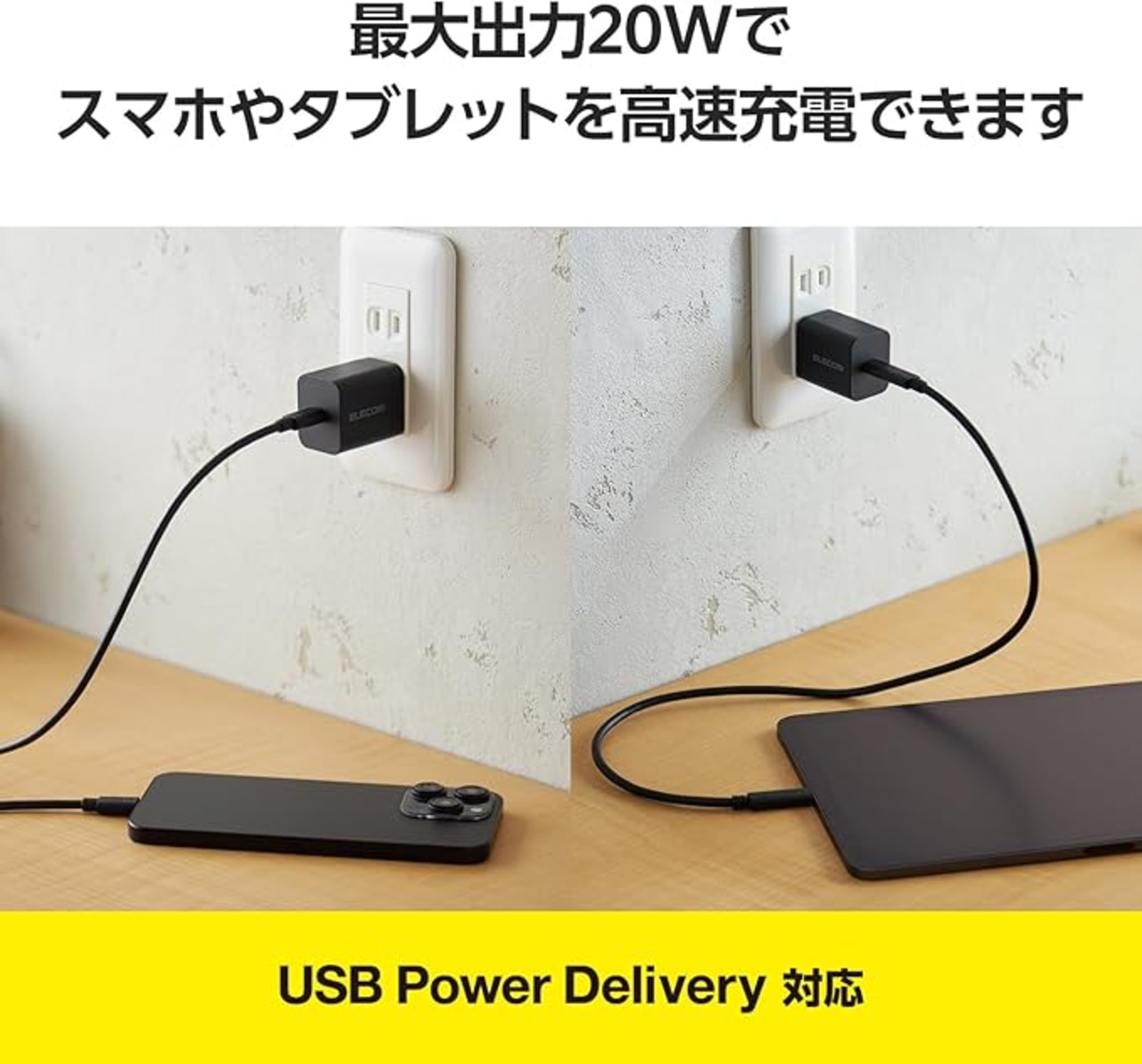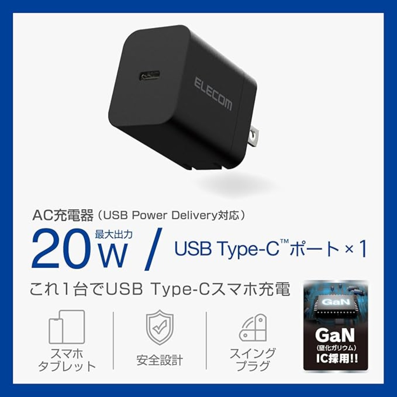 エレコム 充電器 Type-C 1ポート USB PD対応 20W PSE認証品 GaN採用 折りたたみ式プラグ ブラック MPA-ACCP6820BK