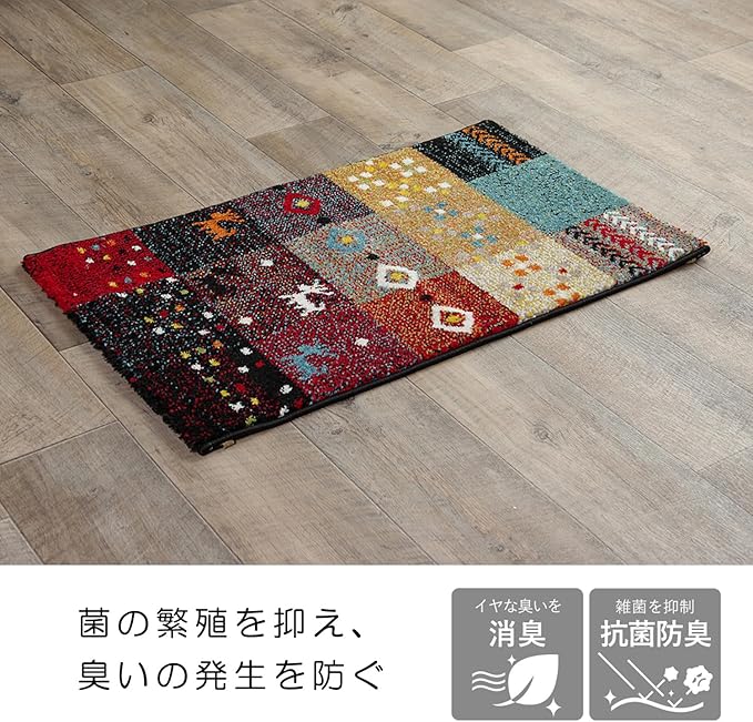 イケヒコ 玄関 選べる マット ラグ ウィルトン トルコ フォリア 約60 90cm レッド ギャベ柄 抗菌防臭 消臭機能 へたりにくい #2042569