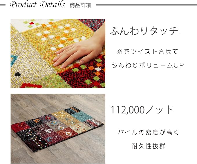 素材:ポリプロピレン100% 112,000ノット ※フリーゼセット糸使用 パイル長約9mm