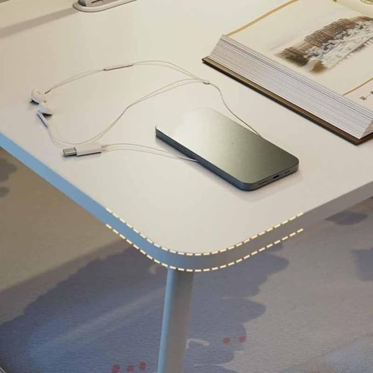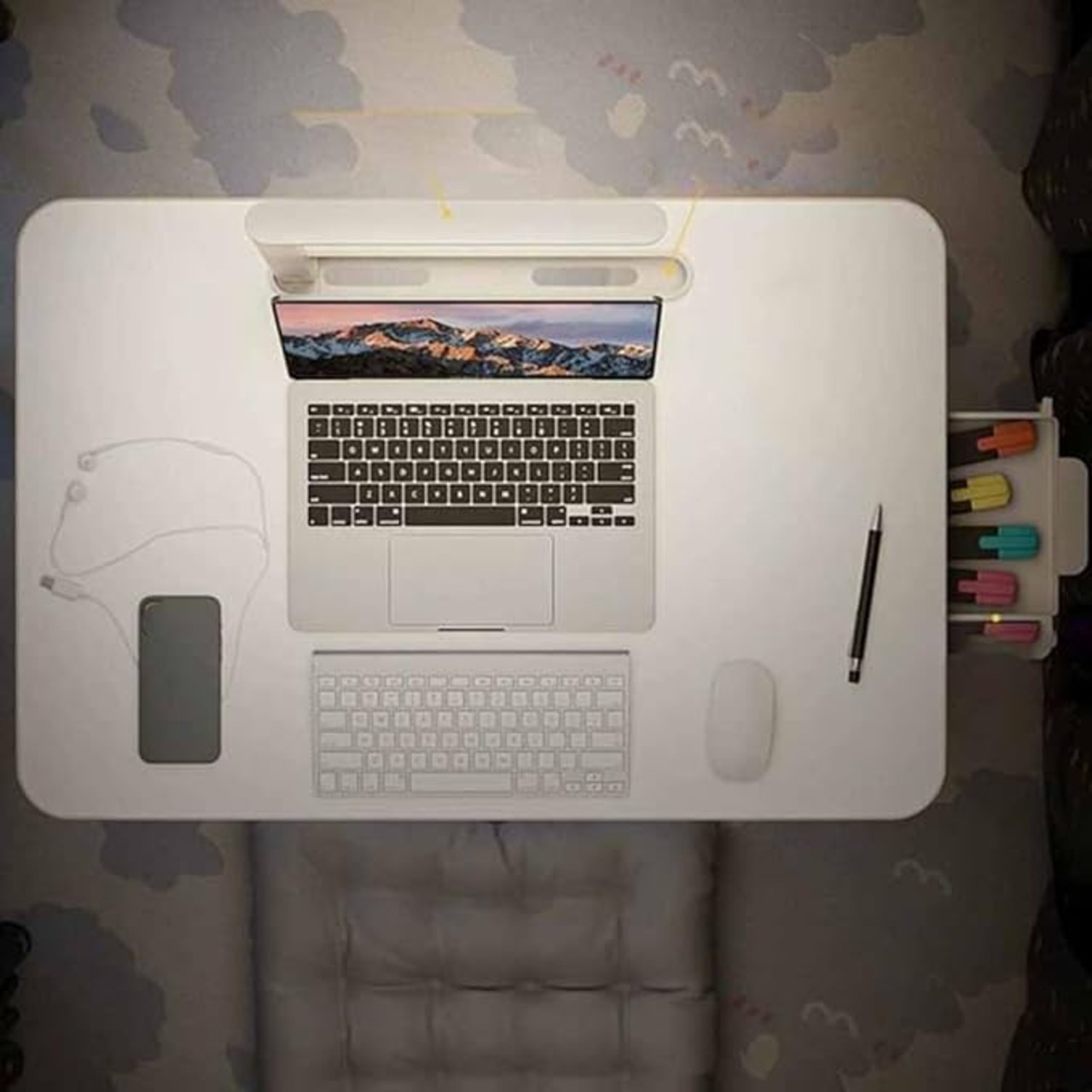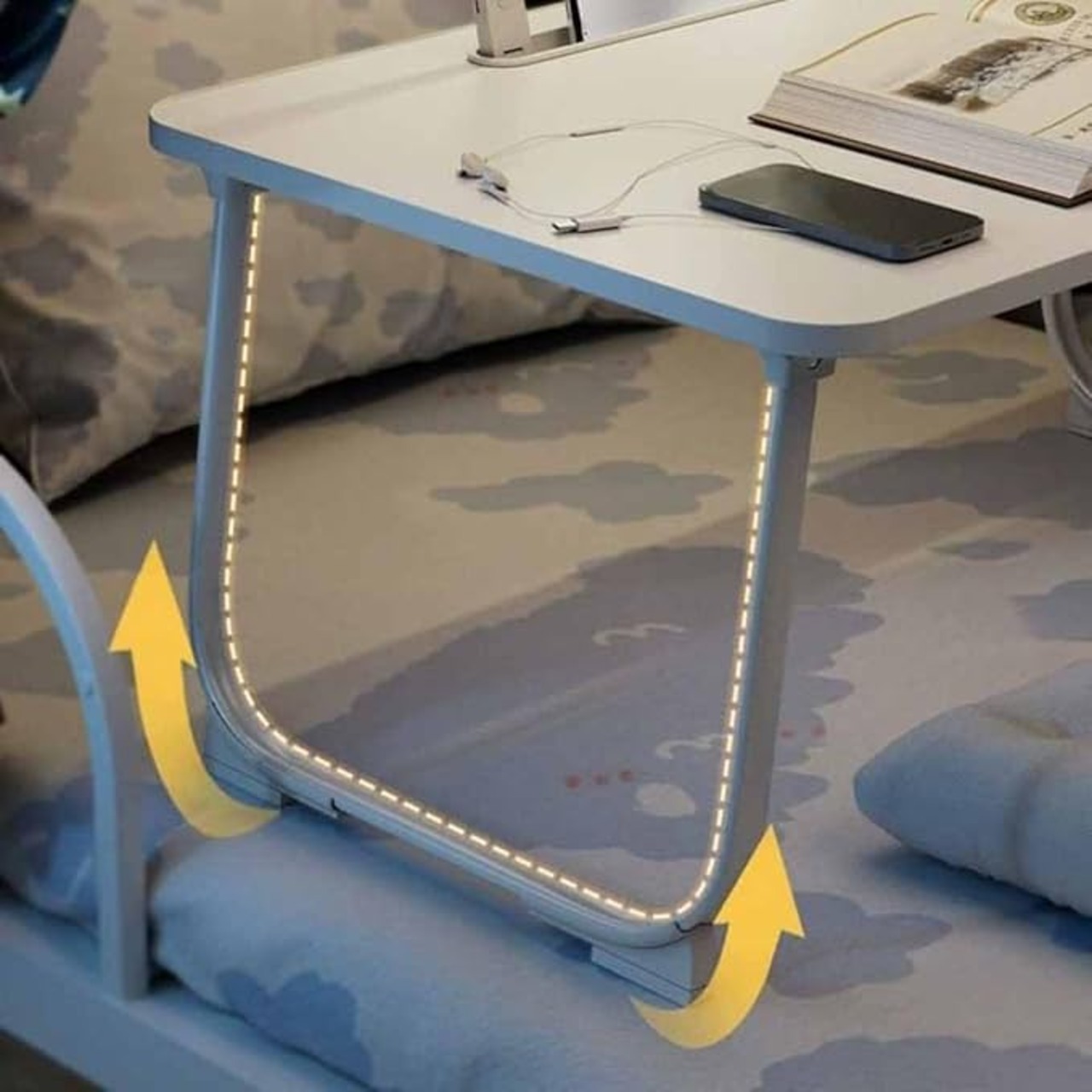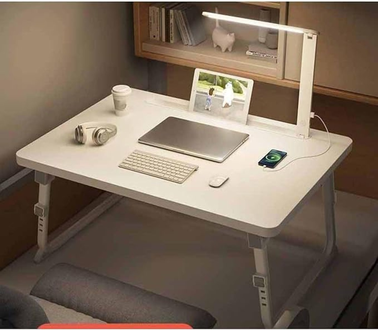 [dhiuebc] 折りたたみデスク ベッドテーブル ベット用テーブル折りたたみテーブル ローテーブル 折りたたみ パソコンテーブル 折りたたみテーブル ミニテーブル テーブル 一人暮らし ベッドテーブルデスク ベッド 机 折りたたみ式テーブル ホワイト 腕保護 大容量 60*40*28cm 読書灯付属
