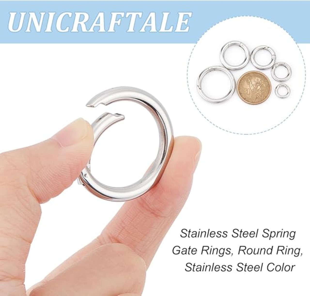 UNICRAFTALE 5個 5サイズ 316ステンレススチール スプリングゲートリングクラスプ オープンラウンドメタルクラスプ スプリングリング トリガークラスプ ファスナー ブレスレットクラスプ ジュエリー製作用