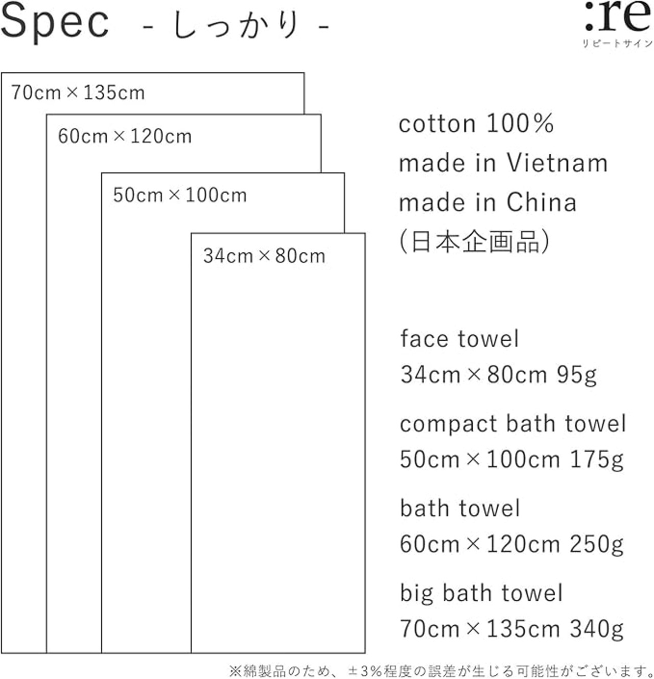 【毎日使うものだから】 お風呂上りや洗顔など、タオルは毎日使うもの。 普段使いのタオルだからこそ、毎日の繰り返しの中でちょっといいものを使ってみてほしい・・・ そんな想いから生まれたのが、:reリピートサインの【デイリー】シリーズです。