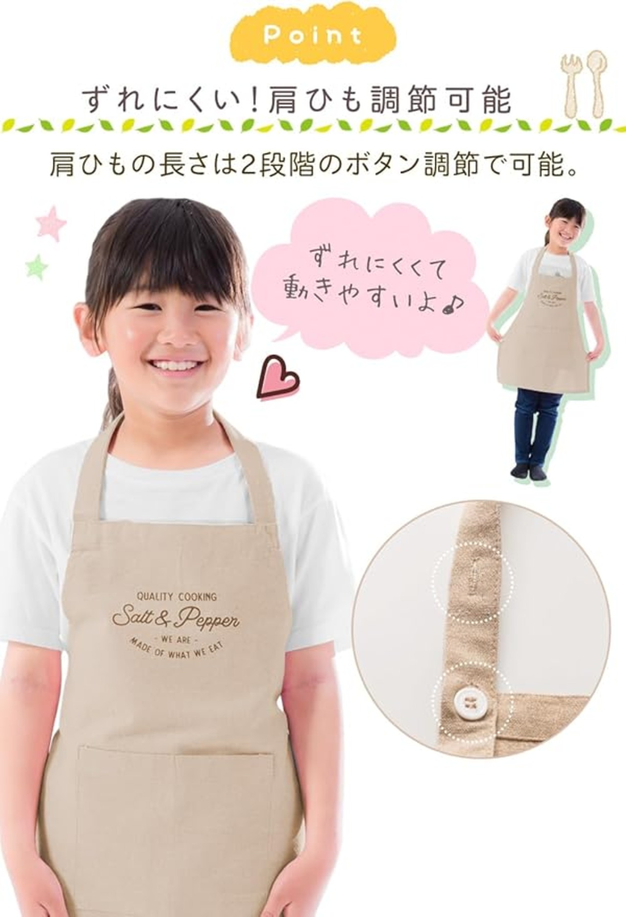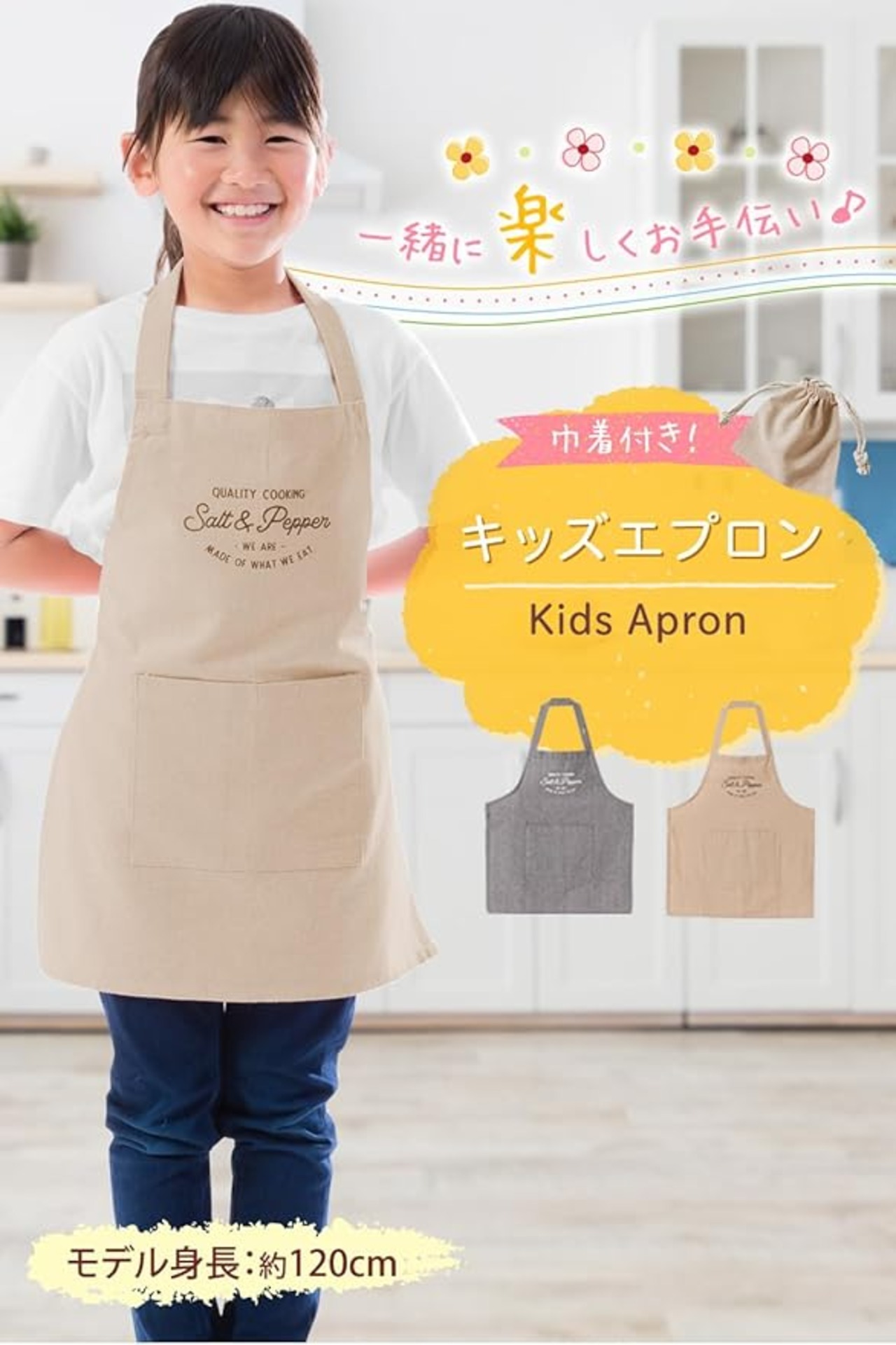 [システムK] キッズエプロン 【お子様と一緒に家事を楽しく】 小物などを収納できるポケット付き 持ち運びに便利な巾着が付属 お手伝いエプロン キッズ 子供用 可愛い 学食 給食 洗える チャコール
