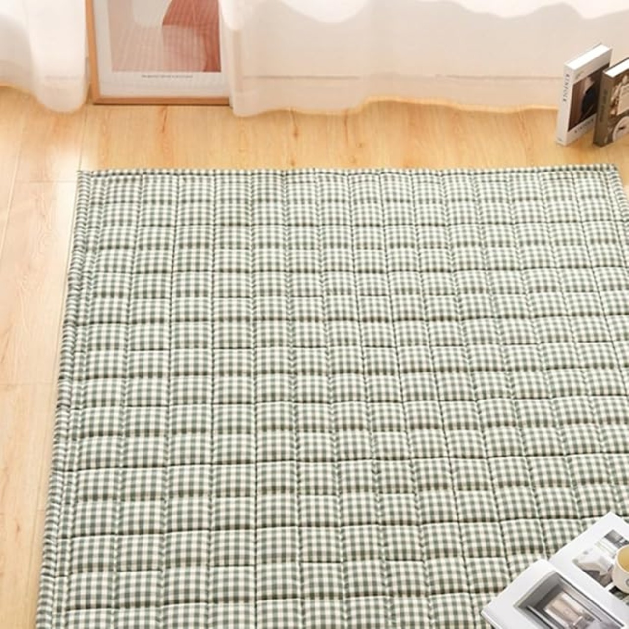 [NHYGDY] 北欧 花柄 ラグマット カーペット キルトラグ 洗える おしゃれ 綿100% かわいい 快適 滑り止め付き 防音 床暖房対応 軽量 カラー2 折り畳み可 オールシーズン 子供部屋 リビング 120*200cm 洗えるラグ 柔らかい 肌触りよい 通気性
