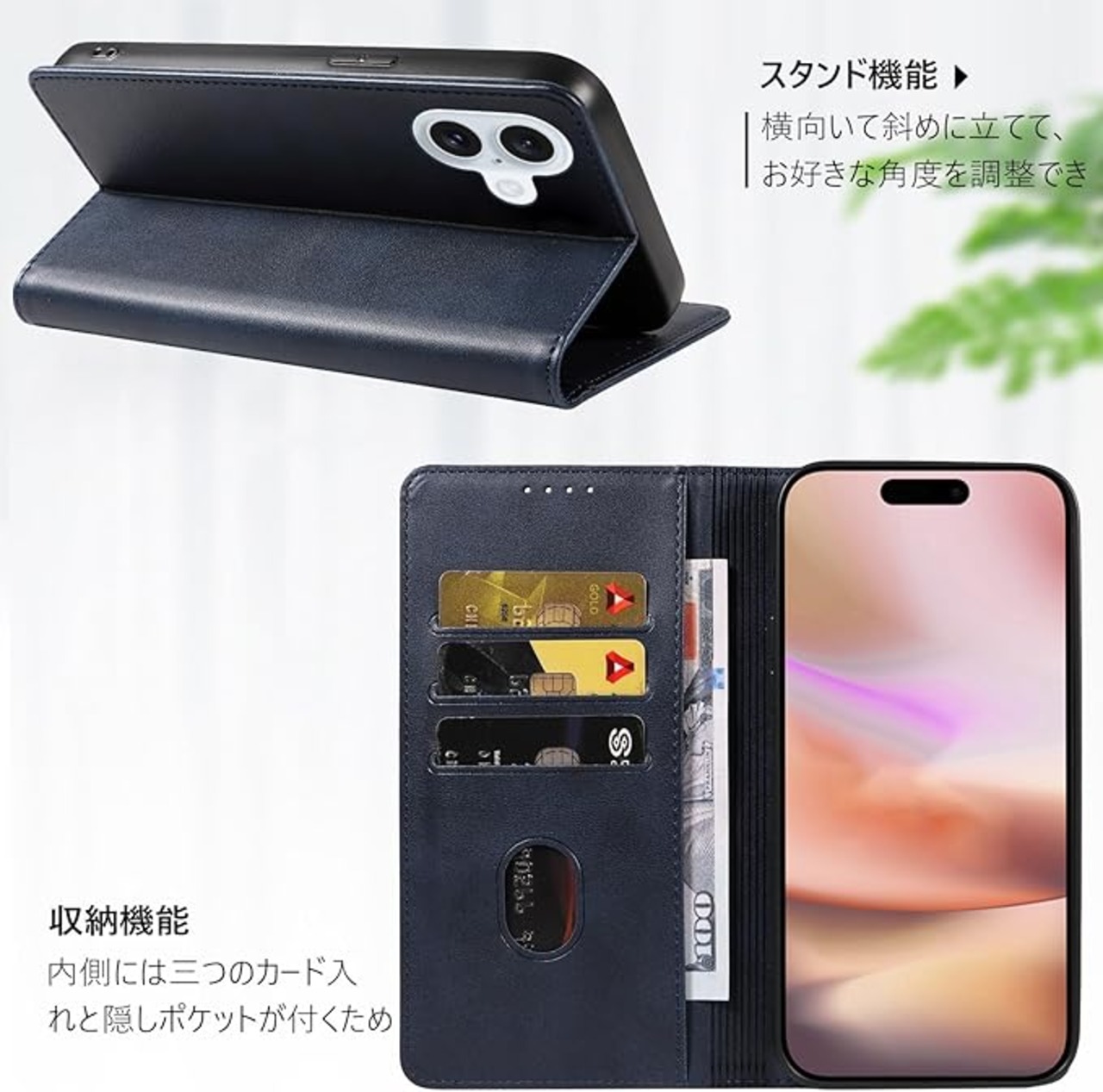 【多重保護】iphone16手帳型ケースの四隅にラウンド処理がされており、衝撃吸収機能あり。ンナーケースはソフトなTPU素材で、全面保護を与える同時に着脱しやすいです。アイフォン 16ケースに使われているマグネット式の設計により、スマートフォンをしっかり固定できます、開閉簡単。しっかりの多重保護でお携帯を守り抜きます。