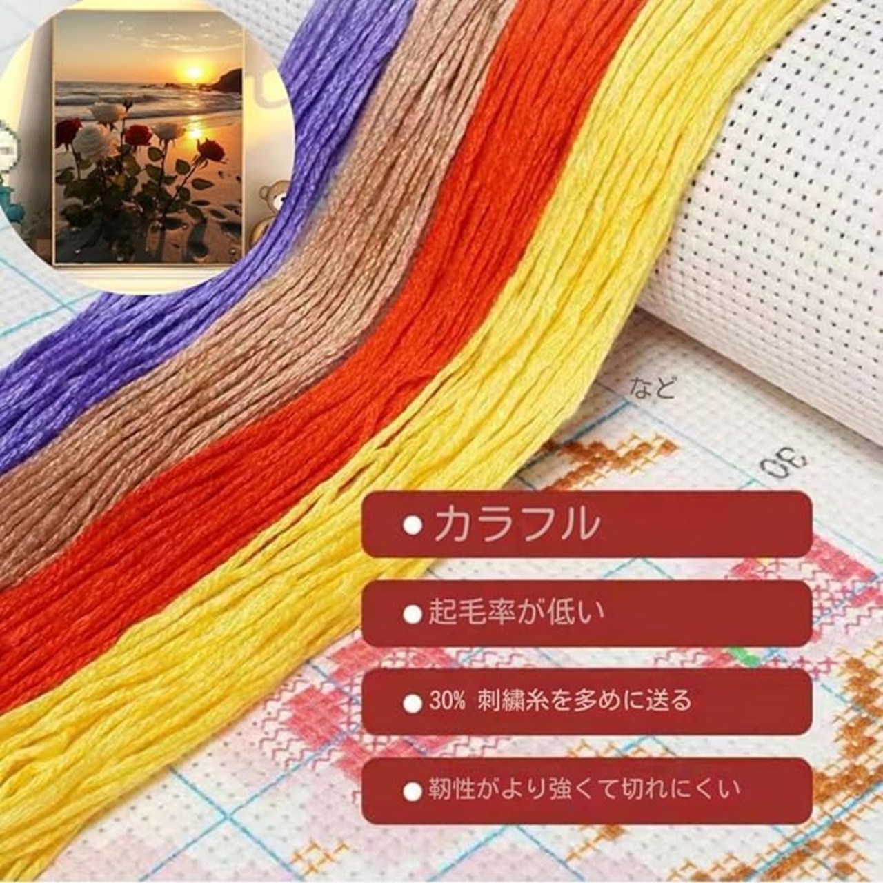 1.高品質の綿糸、柔らかく適度な、刺繍は平らで滑らかで、毛玉になりにくいです。糸番号がマークされており、刺繍が簡単で、初心者に適しています。