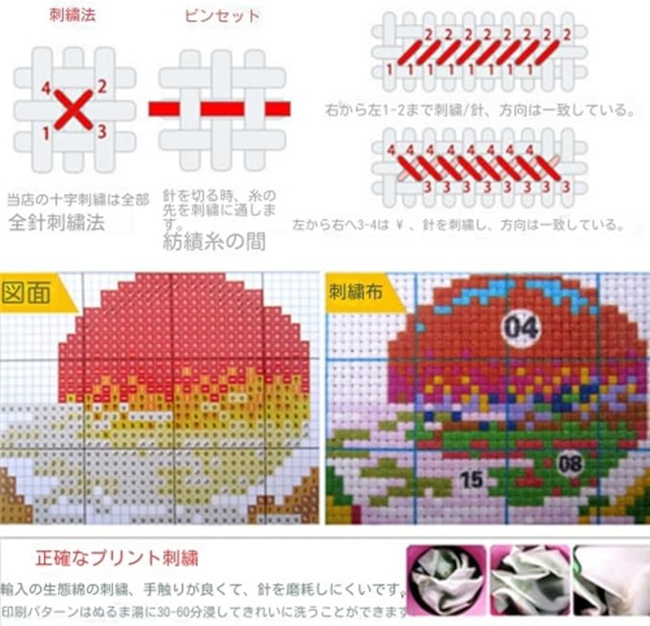 2.刺繍生地は新しく新鮮な印刷技術を採用しており、新鮮な色、明らかなカラーブロックのコントラスト、明確なシンボルを備えており、時間と心配を節約し、理解しやすく刺繍するのが簡単です。