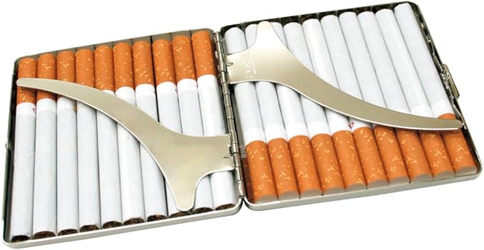 タバコをバラして収納するタイプのシガレットケースです。キングサイズ(長さ85mm)のタバコがぴったり1箱分の20本収まります。 ケースに収めることでご自分のペースで喫煙本数をコントロールすることができ、便利にお使いいただけます。