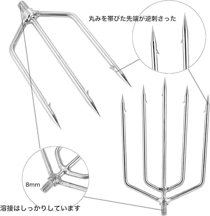 WanFengXue 2枚入 銛 ステンレス鋼釣り槍 3歯と5歯 スピアフォーク 8mmネジ手釣り銛 耐久性 持ち運び便利 歯の太さは6mmです スピア とげ 銛先 ラウンドフォー 魚 カエル サケ ウナギなどに最適