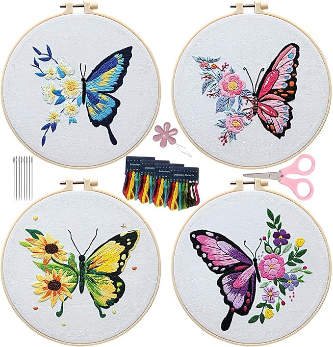 に最適: 繊細な蝶の花の模様が特徴の蝶刺繍キットで刺繍の芸術を深く掘り下げ、見事な プロジェクトを作成することができます。
