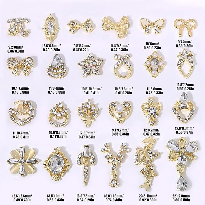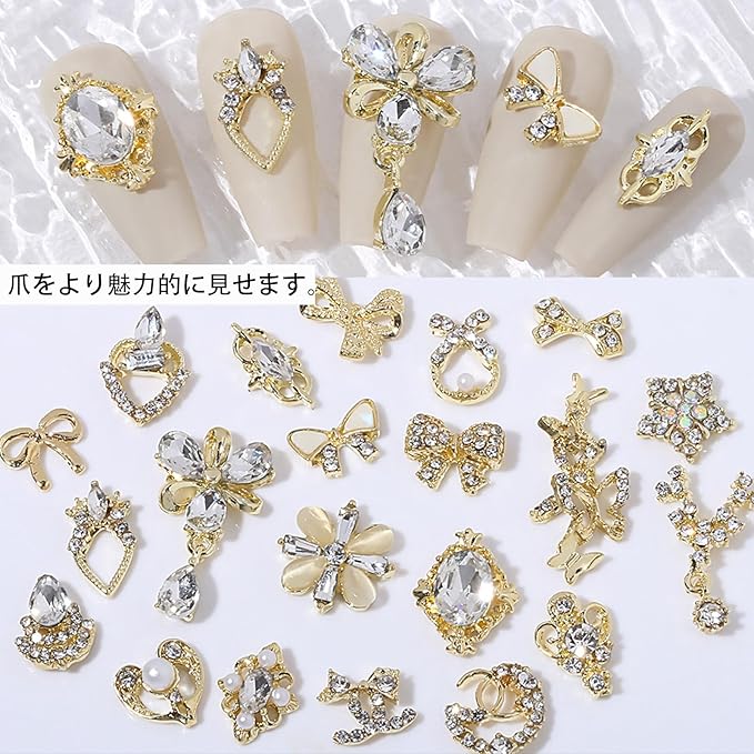【素材】高品質の合金とラインストーン素材を採用したネイルパーツは高級感があって美しい輝きを放ちます。軽量で、使いやすく、耐久性もあります。