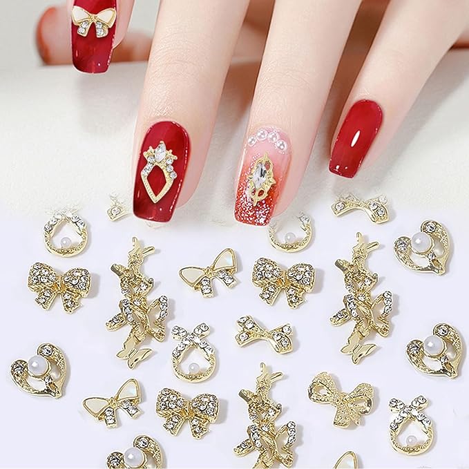 【ネイルパーツ】リボン、ハート、花、蝶などさまざまなスタイルのネイルパーツが揃っています。キラキラしていて、ネイルのワンポイントにぴったりです。