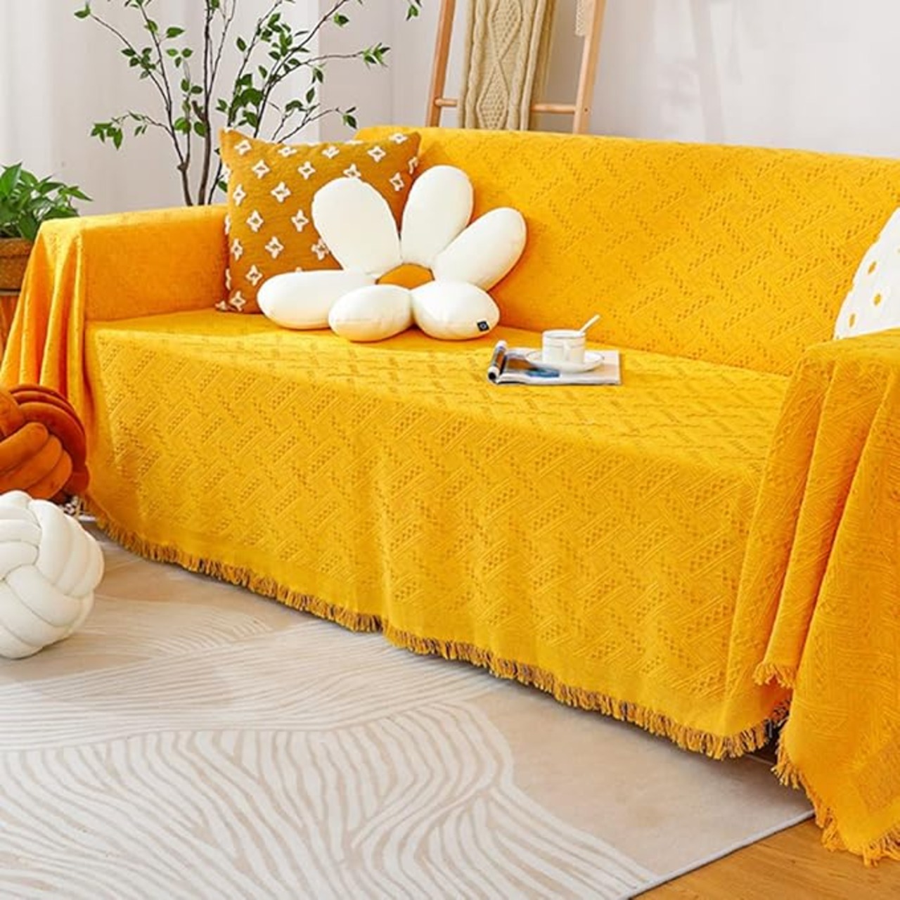 [SDGYS3G] マルチカバーソファーやベッドカバーに使えるマルチクロス 北欧 シンプル イエロー おしゃれ 快適 1~2人掛け 長方形 フリンジ付き防塵カバー 90*150 ソファー 椅子 ベッド ひざ掛け 肩掛け カーペット洗濯可オールシーズン利用可 テーブルクロス