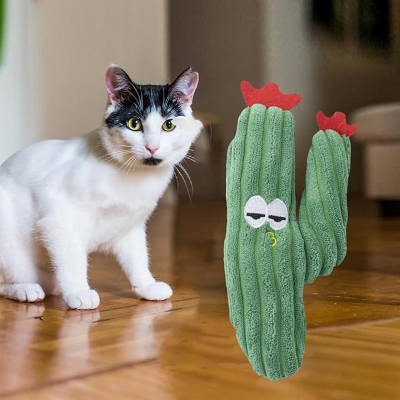 インテリア調和: 猫の視線を釘付けにする鮮明な色彩と、遊び心と機能性を兼ね備えたサボテンデザインが、リビング空間とシームレスに融合します