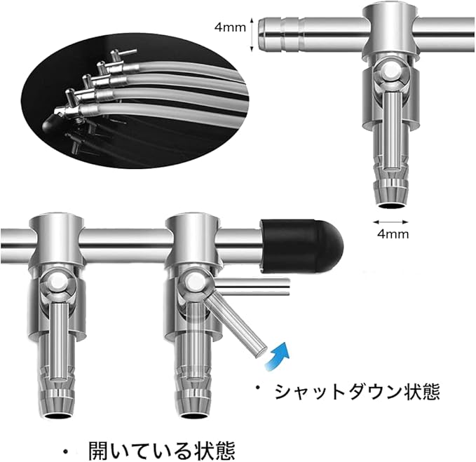 【サイズ】分岐アウトレットバルブインターフェイスサイズ:内径4MM。