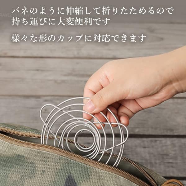 バネのように伸縮するのでコンパクトになり持ち運びが便利です。