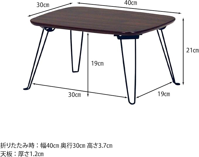 不二貿易(Fujiboeki) ローテーブル 折りたたみ 幅40 奥行30 高さ21cm ダークブラウン センターテーブル 木目調 コンパクト収納 トロン 92244