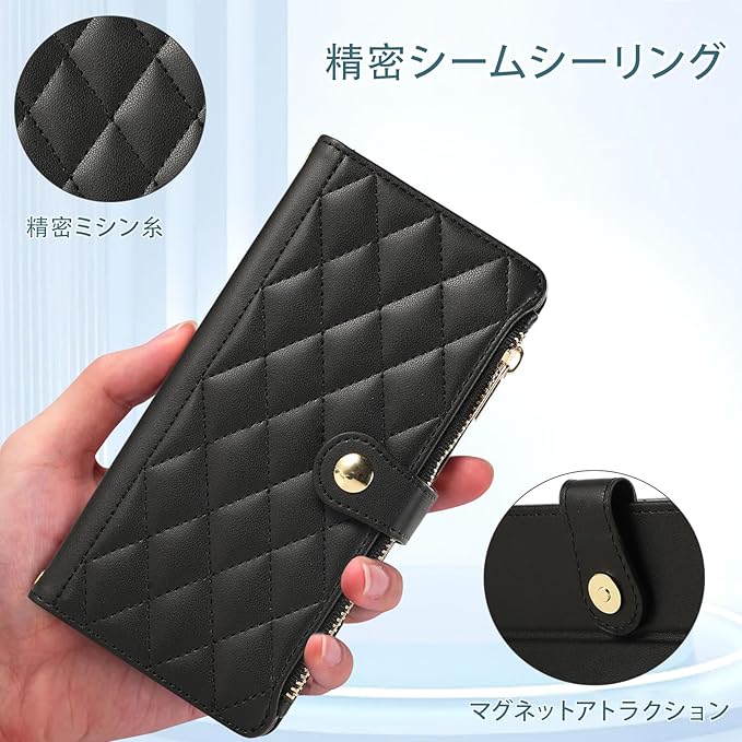 For Xiaomi Redmi Note 10 JE ケース 手帳型 Redmi Note 10T ケース ショルダー XIG02/A101XM ケース ひし形柄 人気 女性 レドミノート10T ケース 肩掛け カード収納 ジップ付き財布 横置き機能 シンプル お洒落 スマホケース (ブラック) | etshop