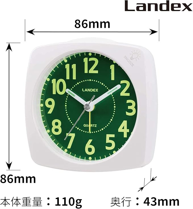 機能:連続秒針、電子音アラーム、スヌーズ、白色LEDライト