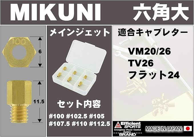 ポッシュフェイス(POSH FAITH) バイク用品 メインジェット 6オーバーサイズメインジェットセット ミクニ 六角大 VM20/26/TV26/フラット24 (6X11.5) 700037-10 | etshop