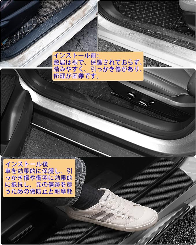 取り付け簡単:取り付け説明書付き、車種専用設計のためフィット感良好。 4枚セット サイドステップガード ( 運転席側用+助手席側用+後部席両側用 )。いくつかの車は2セットを購入することをお勧めします、内側と外側のペダルを取り付けることができます。