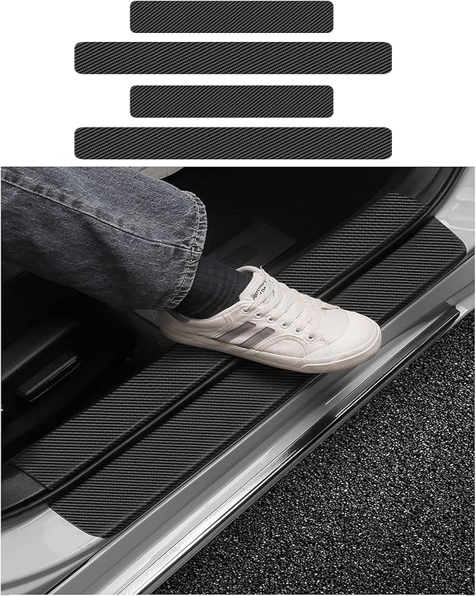 アップグレード材料:従来の材料とは異なり、高品質のカーボンファイバーレザーを使用します。これは、厚く、防水性があり、耐摩耗性があり、耐久性があります。裏面付属の専用両面テープで簡単に貼り付けできます。剥がし跡も残らない設計です、塗装を傷つけません。