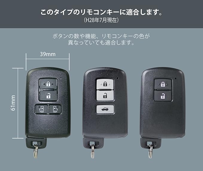 ●本製品はリモコンキーの傷・破損を完全に防ぐものではありません。●本製品に防水機能はありません。●リモコンキーの電池が消耗していると、ドアのロック/アンロックができなたかったりエンジンがかからない場合があります。その場合は、本製品からリモコンキーを取外し、車の取扱説明書に従って操作してください。