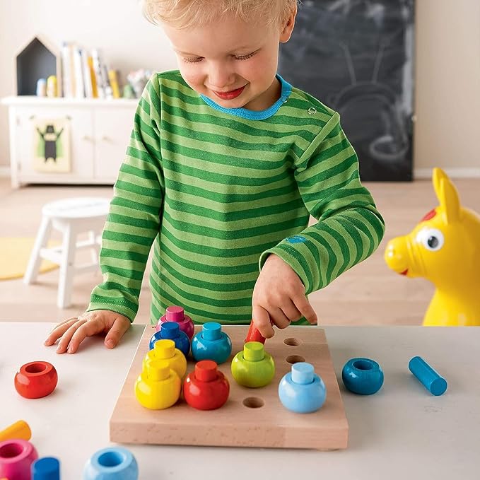 ✅HOT推奨は2才児のおもちゃですが、ペグと土台で遊ぶと1才頃から遊べます。 作りもHABAらしくしっかりして美しい木成りです。 長く遊べるおもちゃとしてお勧めです。