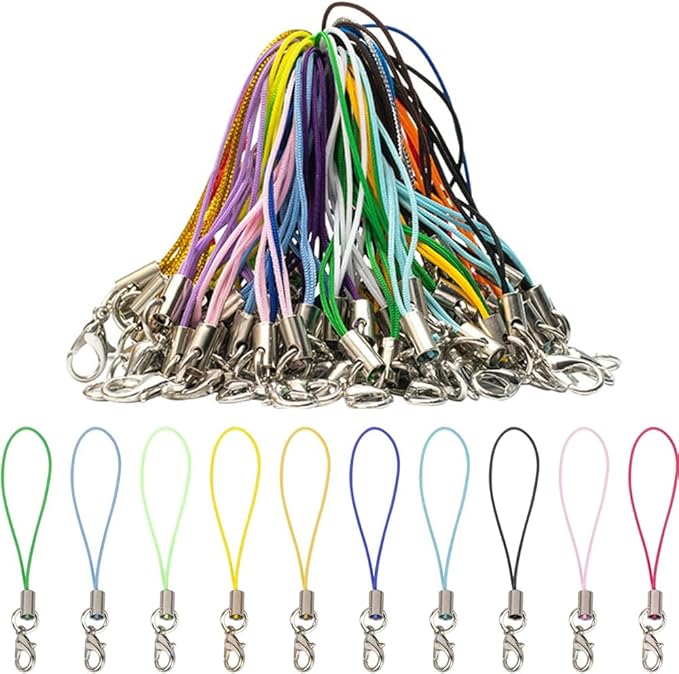 ストラップ フック付き 携帯ストラップ アクセサリー ストラップパーツ ポリエステル糸装飾用紐 DIY 手つくり 自作 金具 アクセサリ パーツ 紛失防止 100本セット(20色ミックス) | etshop