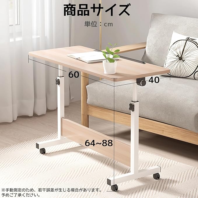 高さ調節可能・キャスター付き:立っても座っても使えるスタンディングデスクです。無段階の調節が可能で、高さ約64~88cmの間で変更できます、使用シーンに合わせてお好みの高さに調整できます。 移動が便利なキャスターは4つともストッパー機能付き、床に傷つけることを防ぐまたは移働しない時キャスターを固定することができて便利です。