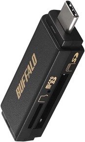 バッファロー USB3.2 Type-C 接続 ポータブルカードリーダー【 SDXC/SDHC/SD/MMC/RS-MMC/microSDXC/microSDHC/microSD/UHS-I 対応 】 iPhone 16 / 16 Pro / 15 / 15 Pro/iPad スマホ タブレット パソコン 写真バックアップアプリ BSCR125U3CBK | etshop