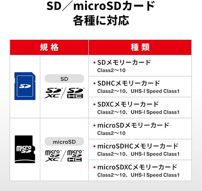 ■対応メディア SD/SDHC/SDXC、 microSD/mic+W4+U8:V8