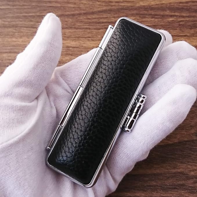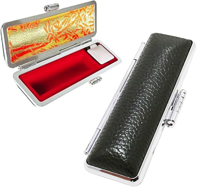 印鑑ケース 牛もみ革 印鑑ケース 朱肉付き 単品 認印 銀行印 実印 (黒, M(13.5mm/15mm兼用))