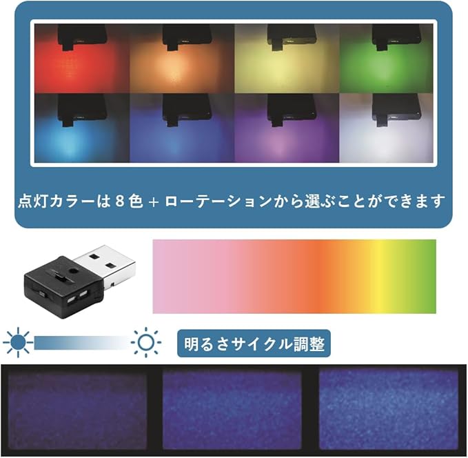 【DFsucces】LEDライト 8色調色 USB 車内用 雰囲気ライト イルミネーション メモリー機能 自動点灯 RGB USB給電 調光機能 アンビエントライト 小型 軽量 簡単取付 (Type-A 1P) | etshop