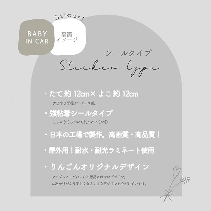 ◆シンプルなのでパッと見て赤ちゃんが乗っていることがすぐに分かり、 また様々な車にも合わせやすいデザインとなっております。