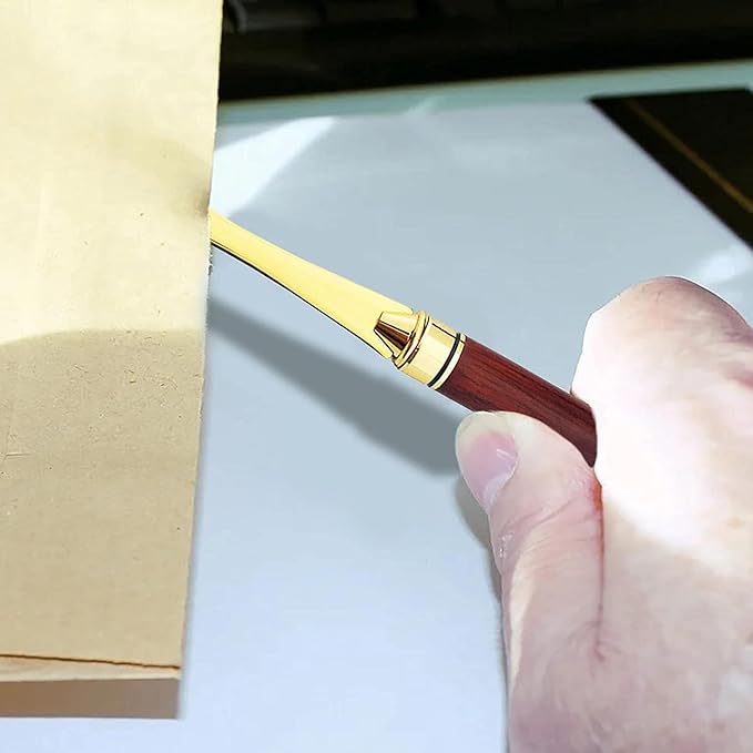 安全設計:このウッドハンドルレターオープナーは安全であるように設計されており、ブレードは鋭くなく無害であるように設計されています。手紙を開くには、封筒の先端を突き刺してから、刃を使って封筒を切り開きます。