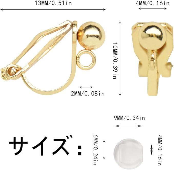 【ご注意】※経年変化で使用中に変色する場合がございますが、透明なマニキュアを表面に塗りますと変色しにくくなります。クリップ式なので、長時間つけていると耳たぶが痛くかもしれません、シリコンを組み合わせることで痛みを和らげることができますが、完全に痛くないようにすることはできません※お肌に合わない場合はご使用を中止してください。※同じ商品でも入荷時期等により、サイズ・色調・メッキ等の仕様に若干の変更・個体差がある場合がございます。