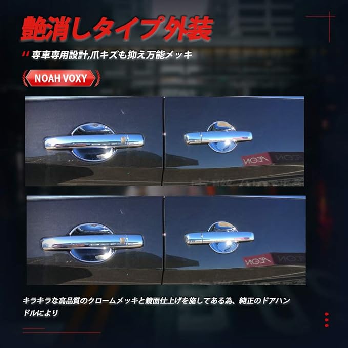 【高級感溢れる見た目】:純正の艶消し銀色ハンドルとは違って、本製品は表面を鏡面シルバーメッキ を施したピカピカしてるドアハンドルカバーなのだ。これをつければ車自体の質感を高め、より高級感 のあるように見える。