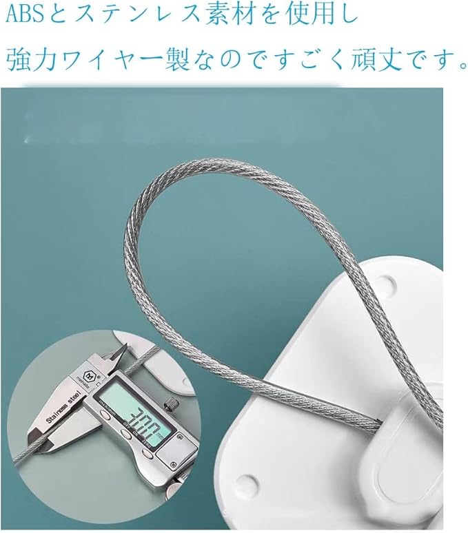 本ドアロックはABSとステンレス素材を使用し、強力ワイヤー製なのですごく頑丈です。粘着力がある両面テープを使用するため、脱落しにくいです。