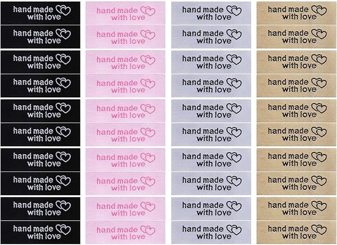 これらの縫製ラベルタグは、高品質のポリエステルでできており、刺激性がなく、一般的に肌にやさしいです。 「HandmadewithLove」のテキストと愛のパターン。