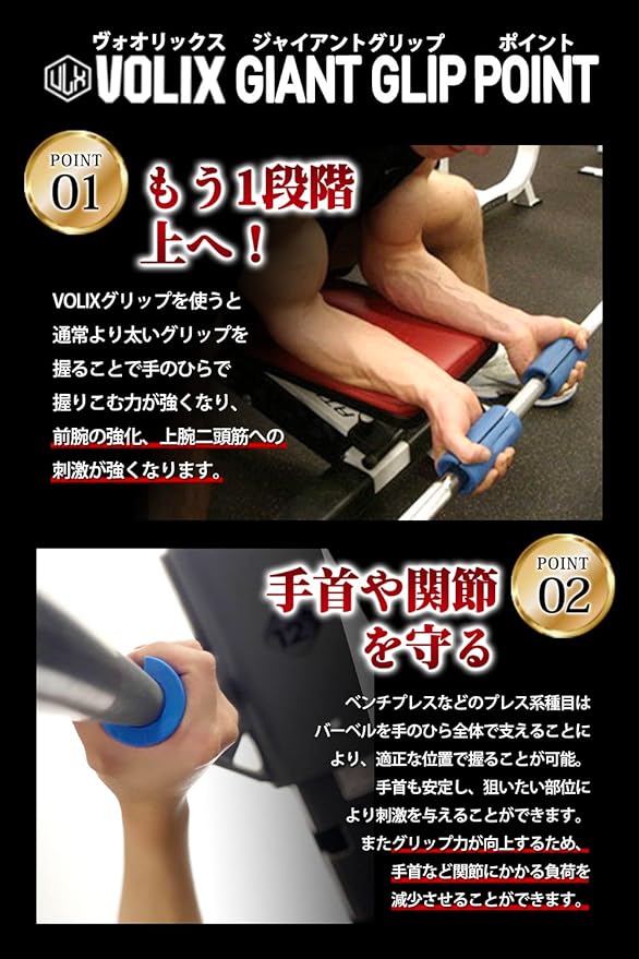 ・【VOLIXのグリップは太く、ダイレクトに腕を刺激する】通常より太いグリップを握ることで、握り込む力が強くなり、前腕の強化、上腕二頭筋への刺激が強くなります。