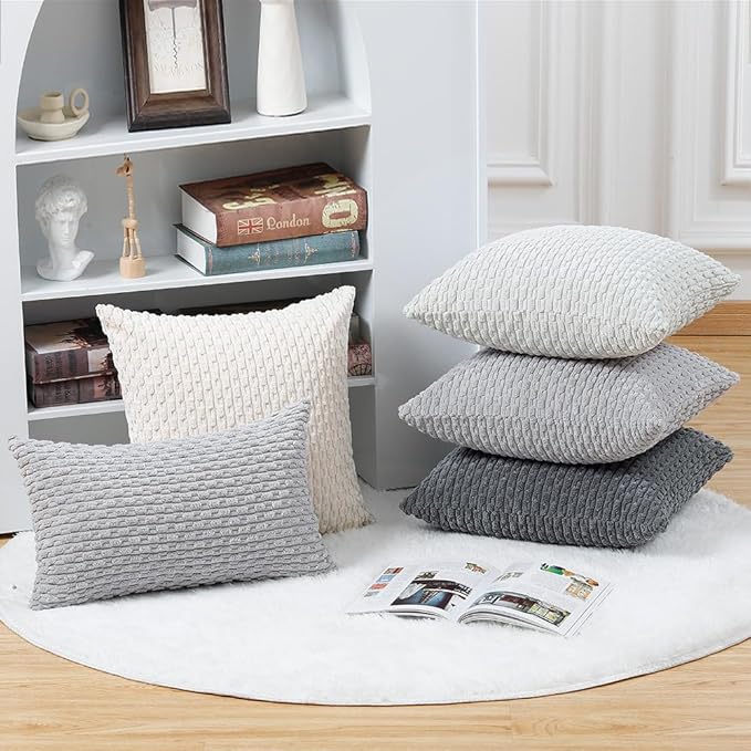 Madizz クッションカバー 2枚セット 柔らかい コーデュロイ 装飾的な 枕カバー 贅沢 スタイル クッションケース 寝室用 ソファ用 45 x 45 cm クリームホワイト