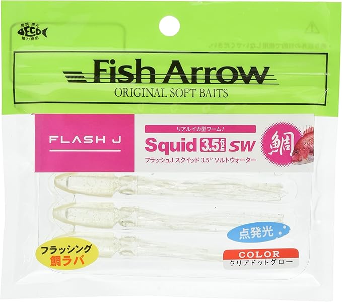 タイラバ専用設計のフラッシュJスクイッドは、イカやタコやクラゲなどを喰っている時に活躍するフラッシング鯛ラバ専用ワームです。10本のロングレッグが起こすトルクのある艶めかしいアクションは、スカートやネクタイには反応しない喰い渋った鯛に効きます。またバイトマーカーにもなるリアルアイがよりアピールします。