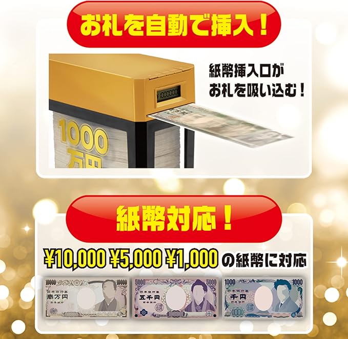 お札が自動で吸い込まれる!全て1,000枚を10,000円札で貯めると・・・なんと1000万円!!
