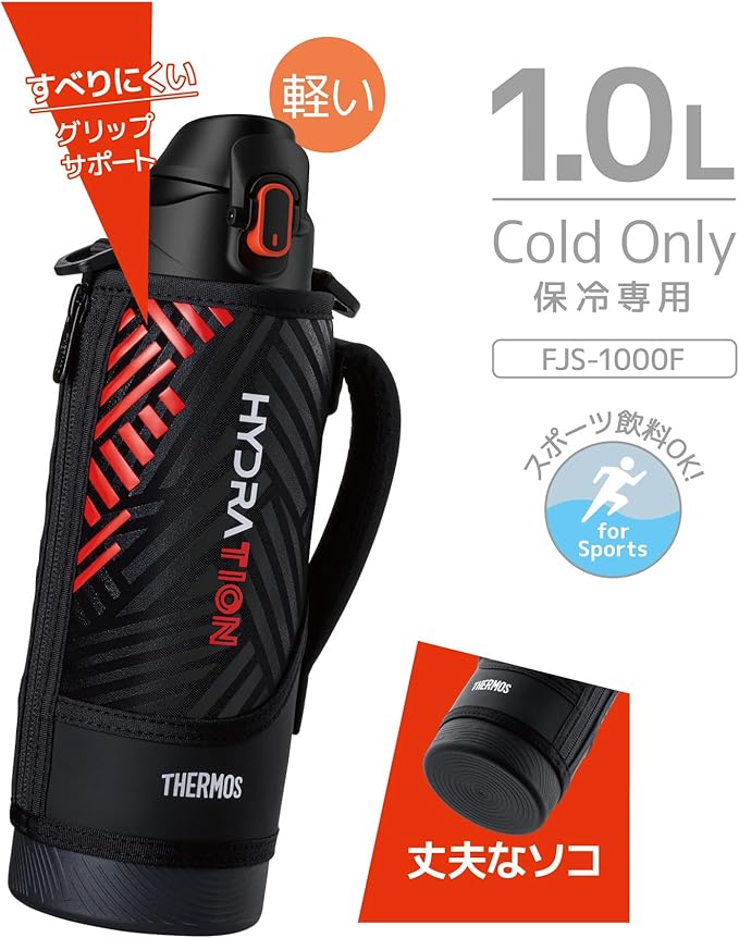 一気に素早く水分補給! ゴクゴク飲める飲み口採用。ポーチにすべりにくいグリップサポート付き。