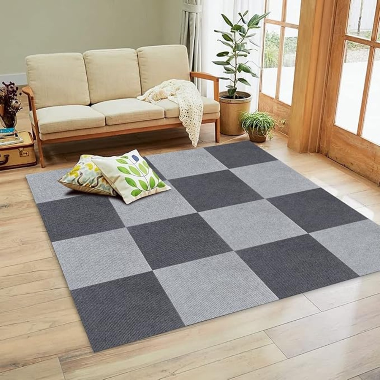 QQpony タイルカーペット ジョイントマット 吸着マット 30 x 30cm 30枚 セット 滑り止め・防污加工・防音・床暖房対応 洗濯機OK&ハサミでカット自由 赤ちゃん・高齢者・ペットに最適 ズレない吸着設計・床保護 玄関・リビング・事務所対応【ライトグレー+ダークグレー】