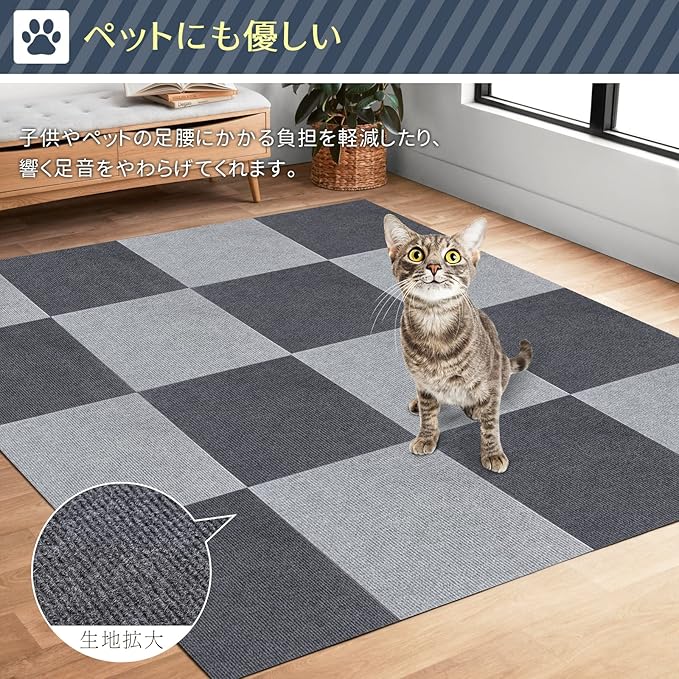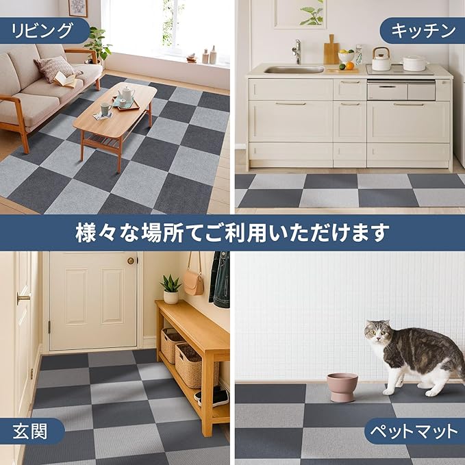 【自由にカット&レイアウト可能】 ハサミで簡単にカットできる素材だから、設置スペースに合わせて自由にレイアウト可能。リビング、ダイニング、キッチン、玄関、廊下、ペットスペースなど、あらゆる場所で活躍します。貼って剥がすのもスムーズで、賃貸住宅にもおすすめ。