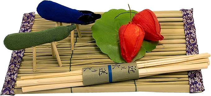 セット内容:マコモ・麻ガラ・ハスの葉(布)・ちりめん牛(ナス)・ちりめん馬(キュウリ)・ほおずき