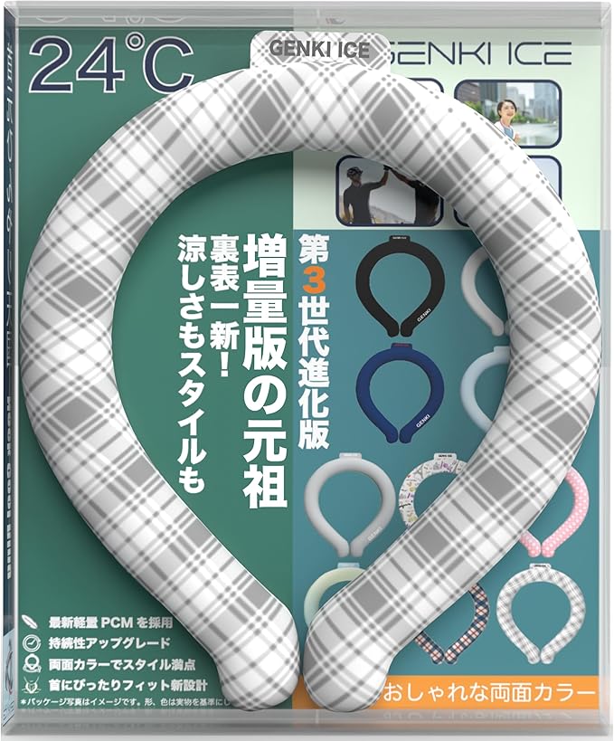 Genki Ice 増量版の元祖 2025再進化 24℃凍結 クールリング ネッククーラー クールネックリング PCM 首 冷却 首ひんやりグッズ 冷却グッズ 大人 子供 L M S XS 熱中症対策 暑さ対策グッズ 日本の企業 キャンプ アウトドア(グレーチェック, L) | etshop