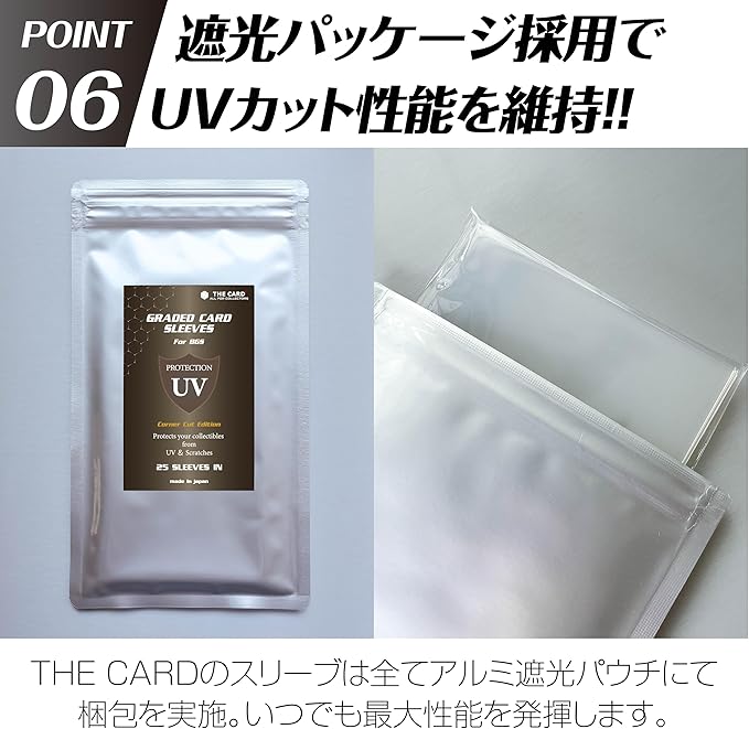 THE CARD ALL FOR COLLECTORS BGS専用 UVカットスリーブ コーナーカットエディション UV保護 厚手 50ミクロン BGS鑑定用スリーブ 遮光パッケージ採用 TCGサイズ対応 BGS鑑定 <UVカット率 90% 以上!!> (25枚) | etshop